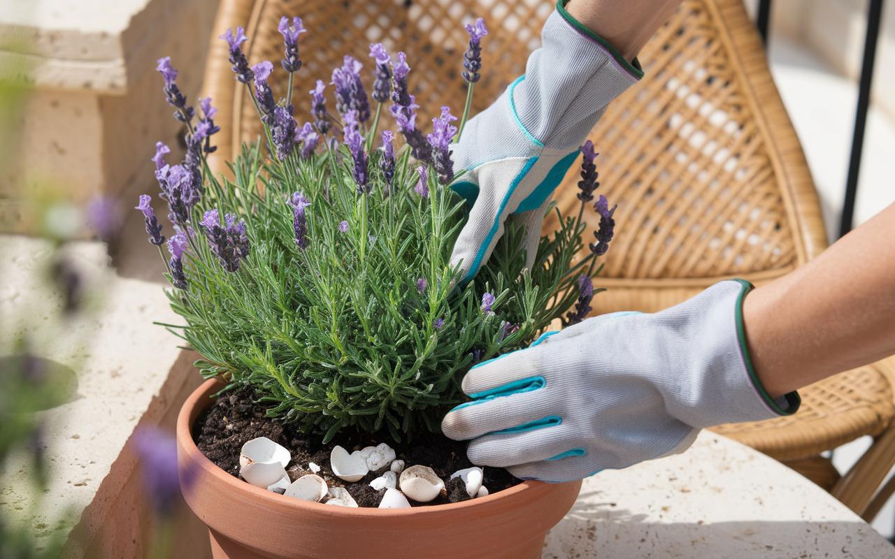 Der beste Zeitpunkt ist das frühe Frühjahr, sobald der Lavendel sichtbar neu austreibt. Gib die Reste als dünnen Ring um die Pflanze, niemals als Haufen direkt ans verholzte Zentrum. Danach genügt ein leichtes Angießen, damit alles Kontakt zum Substrat bekommt.